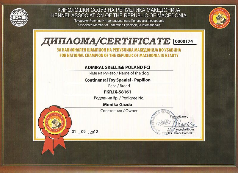 Champion Macedonii, Champion Gruzjii, 4x CAC, 2x CACIB, 3x BOS, 3x BOB, 3x CWC,